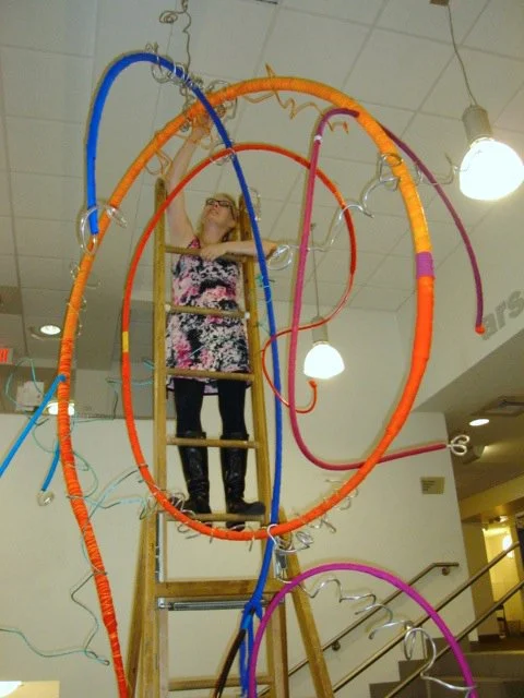 Judy Thomas installing 'Tendrils' at the Arsenal Center for the Arts